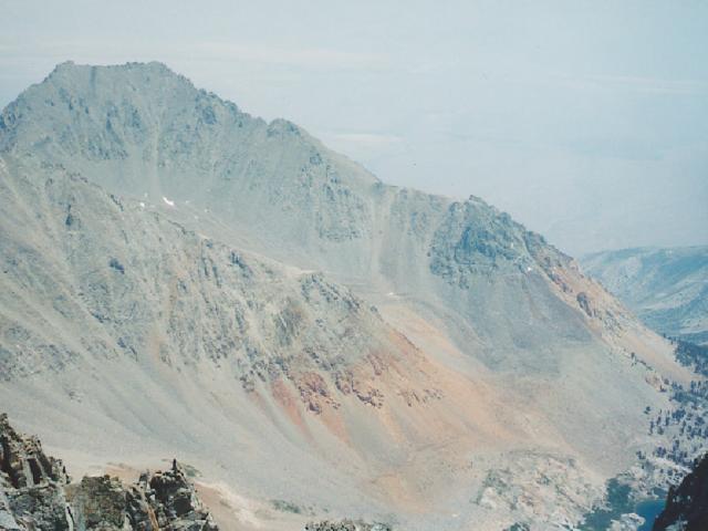 The whole mountain from the summit of Split. This view is looking East with the Owens Valley behind. You can barely make out Red lake in the bottom right area of the photo.