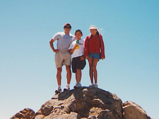 A short distance away is the true summit, a short pile of rocks. It is windy up here and jackets are nice to have.