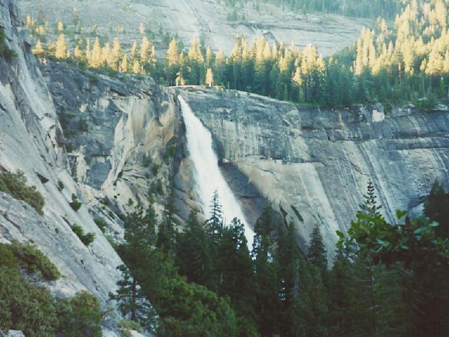 hiking up the Mist Trail and past Vernal Falls we look back at Nevada Falls.