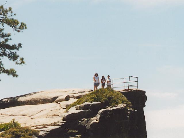 Here they stand on Taft Point. This rail overlooks a few thousand feet straight down to the valley floor and is a spectacular view indeed. Notice the distance between the people and the rail?