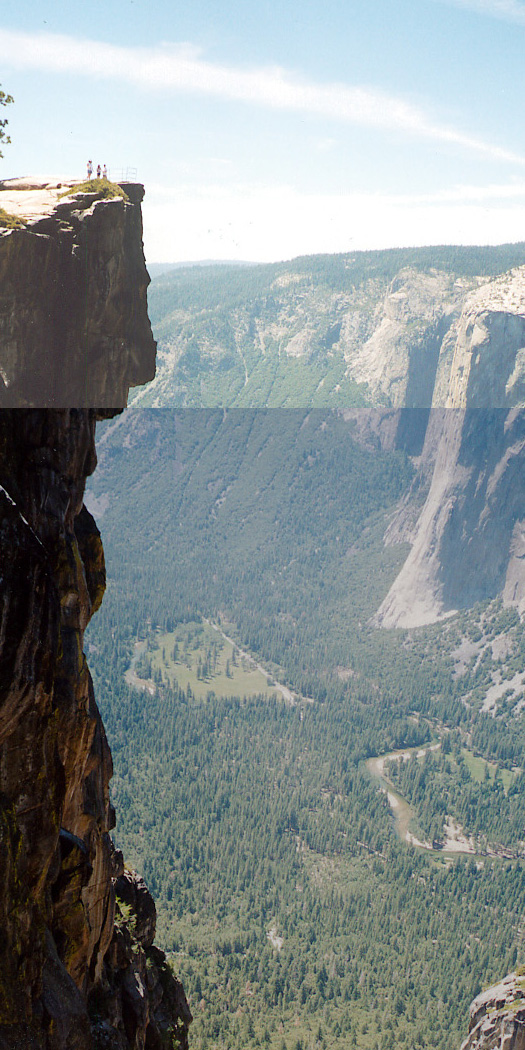 Here in this composite image you can see the dramatic overhang and drop below the people and rail.